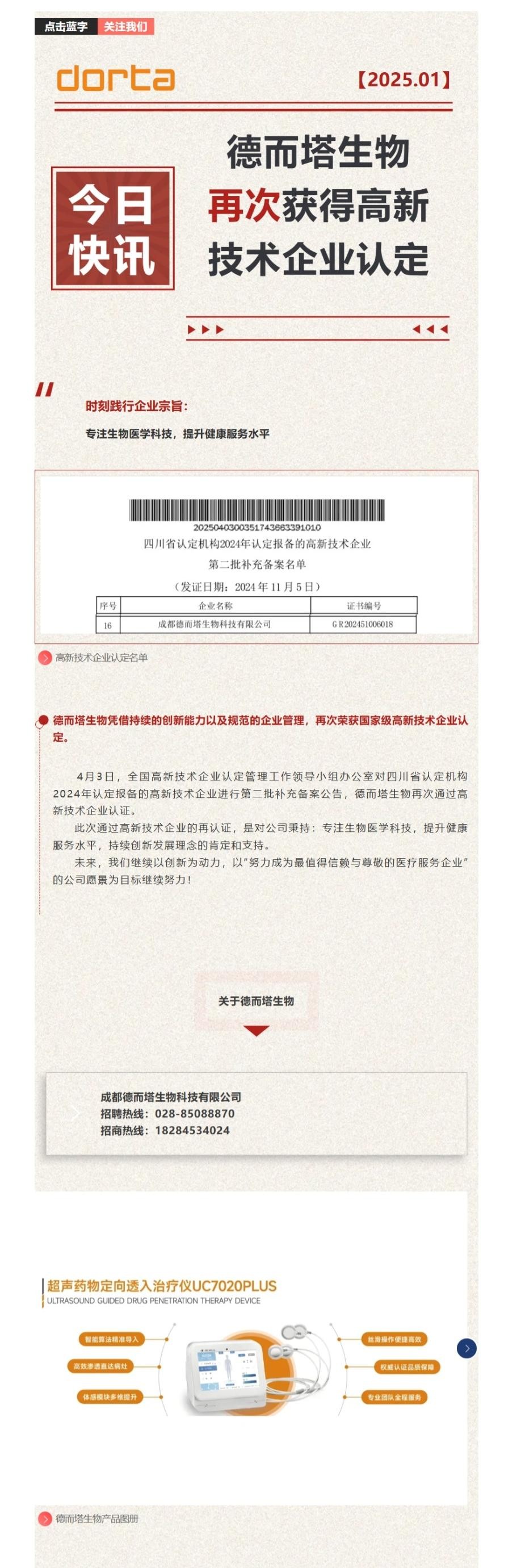 快讯 | 德而塔生物再次获得高新技术企业认定